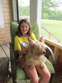 Next we headed north to Maine. The girls loved all the flowers and wild Strawberries Grammie's yard had. They were also very excited to see her dogs Maggie and Jasmine. The fishing there was pristine, the water was so clear and beautiful at both fishing spots. Chloe even got a few bites from the trout, and Brooke got to release one Pat had caught.